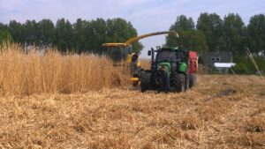 Op grotere schaal wordt dit nog duidelijker. Een hectare miscanthus levert ongeveer 20.000 kg droge biomassa op, waarvan circa 10.000 kg uit koolstof bestaat. Dit komt neer op ongeveer 36.700 kg CO₂ die tijdens de groei uit de atmosfeer wordt opgenomen.
