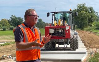 Langs het Drongelens Kanaal in Vught legt aannemersbedrijf J. van Esch momenteel een nieuw fietspad aan. Het fietspad heeft een lengte van ruim acht kilometer, een omvangrijk werk dat tot en met februari 2026 zal doorlopen. Voor dit project is gekozen voor de gekoppelde betonnen fietspadplaten van Bio Bound, gemaakt van circulair en biobased beton. De aannemer plaatst dagelijks ongeveer vijftig platen, waardoor de aanleg in hoog tempo verloopt.