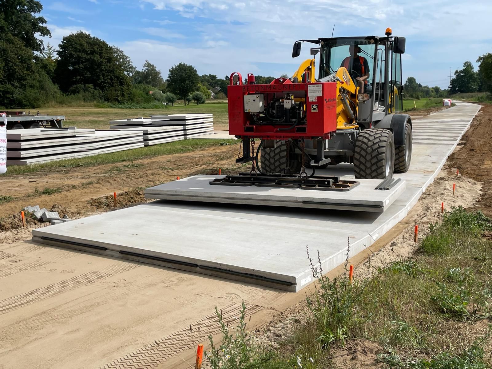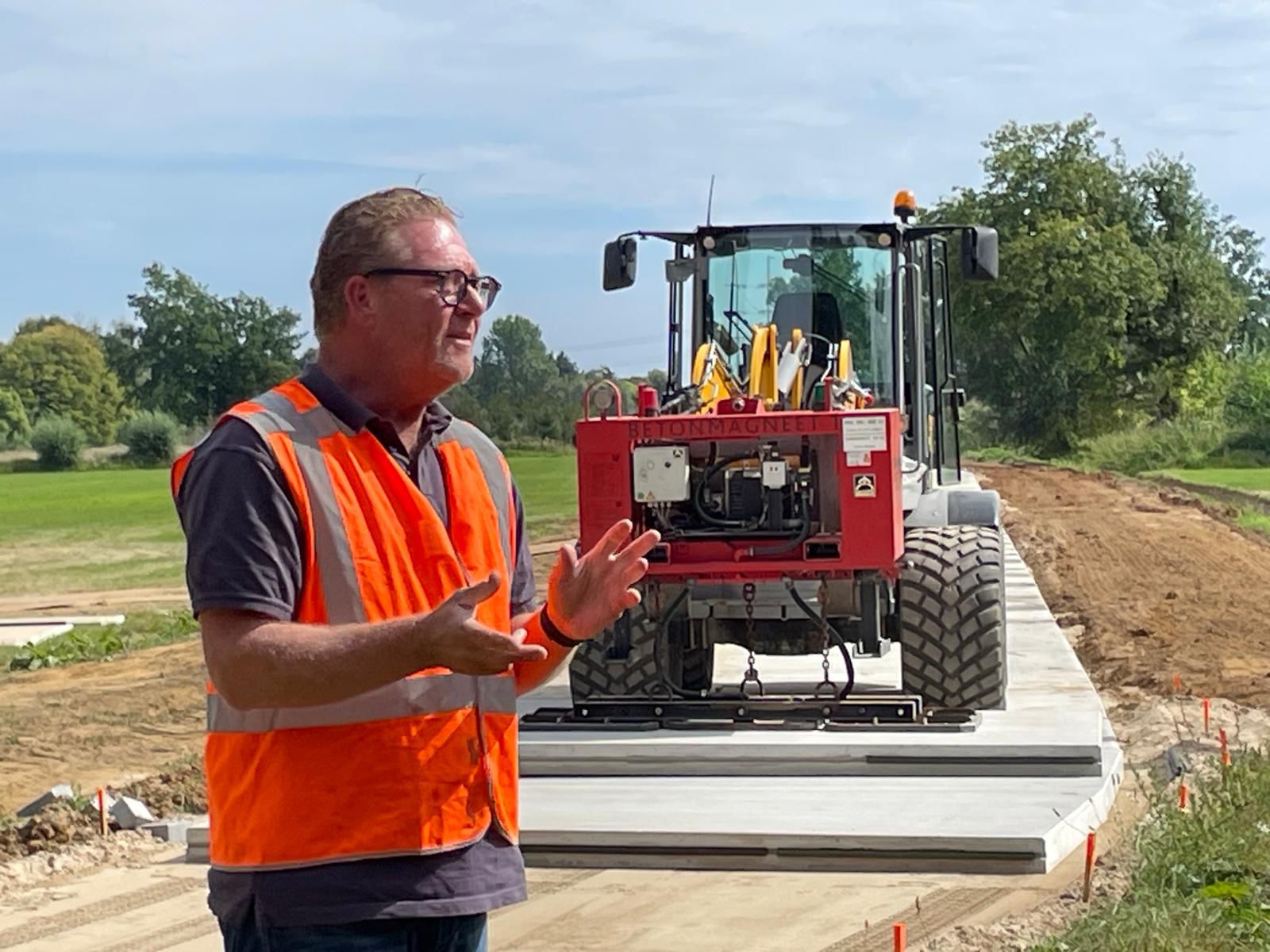 Langs het Drongelens Kanaal in Vught legt aannemersbedrijf J. van Esch momenteel een nieuw fietspad aan. Het fietspad heeft een lengte van ruim acht kilometer, een omvangrijk werk dat tot en met februari 2026 zal doorlopen. Voor dit project is gekozen voor de gekoppelde betonnen fietspadplaten van Bio Bound, gemaakt van circulair en biobased beton. De aannemer plaatst dagelijks ongeveer vijftig platen, waardoor de aanleg in hoog tempo verloopt.